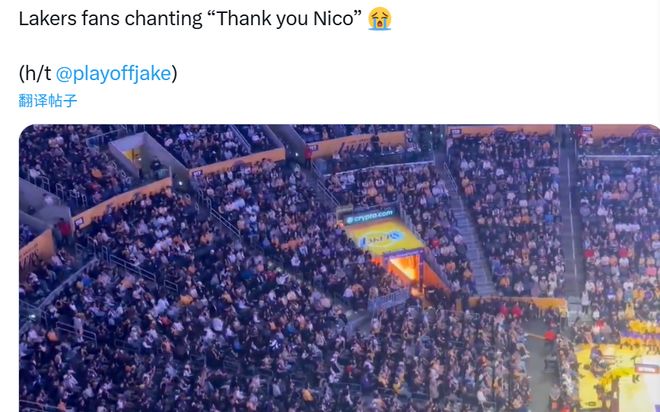 据现场记者报道,湖人主场球迷齐声高呼:“感谢尼科(独行侠总经理哈里森)!”