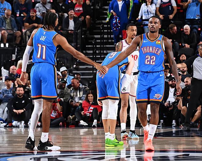 本场比赛中,雷霆的替补外线投射以赛亚-乔(Isaiah Joe)依然是保持了极好的手感。乔全场出场21分25秒,投篮12中7,三分线外10中6,罚球2中2,以超高的效率拿下了全队第二高分22分外加3篮板的数据,还有1次失误和2次犯规,正负值为+7。乔在比赛中将自己超强的投射能力发挥了出来,他在与谢伊-吉尔杰斯·亚历山大(Shai Gilgeous-Alexander)完成挡拆后可以利用后者的防守吸引力为自己争取到足够的出手空间,随后他也能够利用自己超强的投射能力给对手制造精准打击。乔在场上的效果算得上是相当不错,他靠着类似的方式拿下了大量的分数并且给球队在进攻端制造了大量的威胁,他的强势表现也是为球队的胜利做出了自己的贡献。
